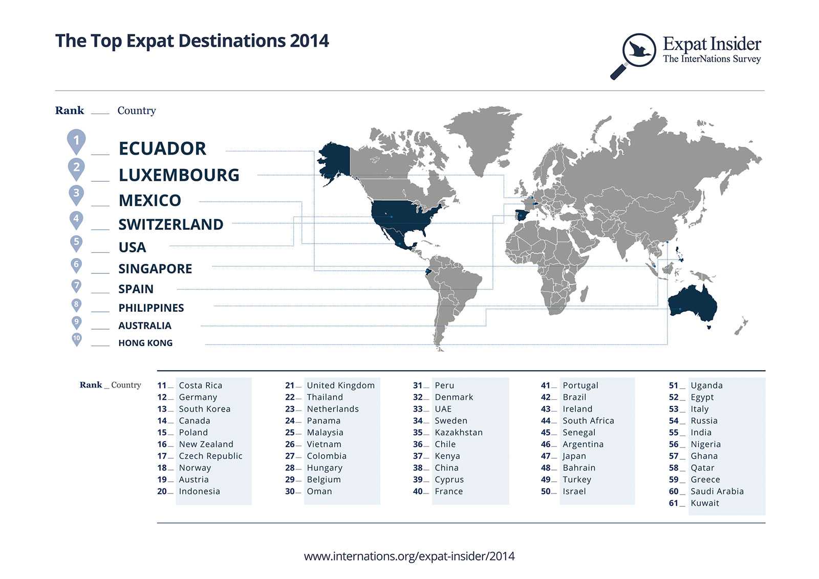 Expat Insider 2014 is the biggest expat survey worldwide, by number of participants. In June 2014, we asked nearly 14,000 expatriates from over 160 countries across the globe a variety of questions about their life abroad.