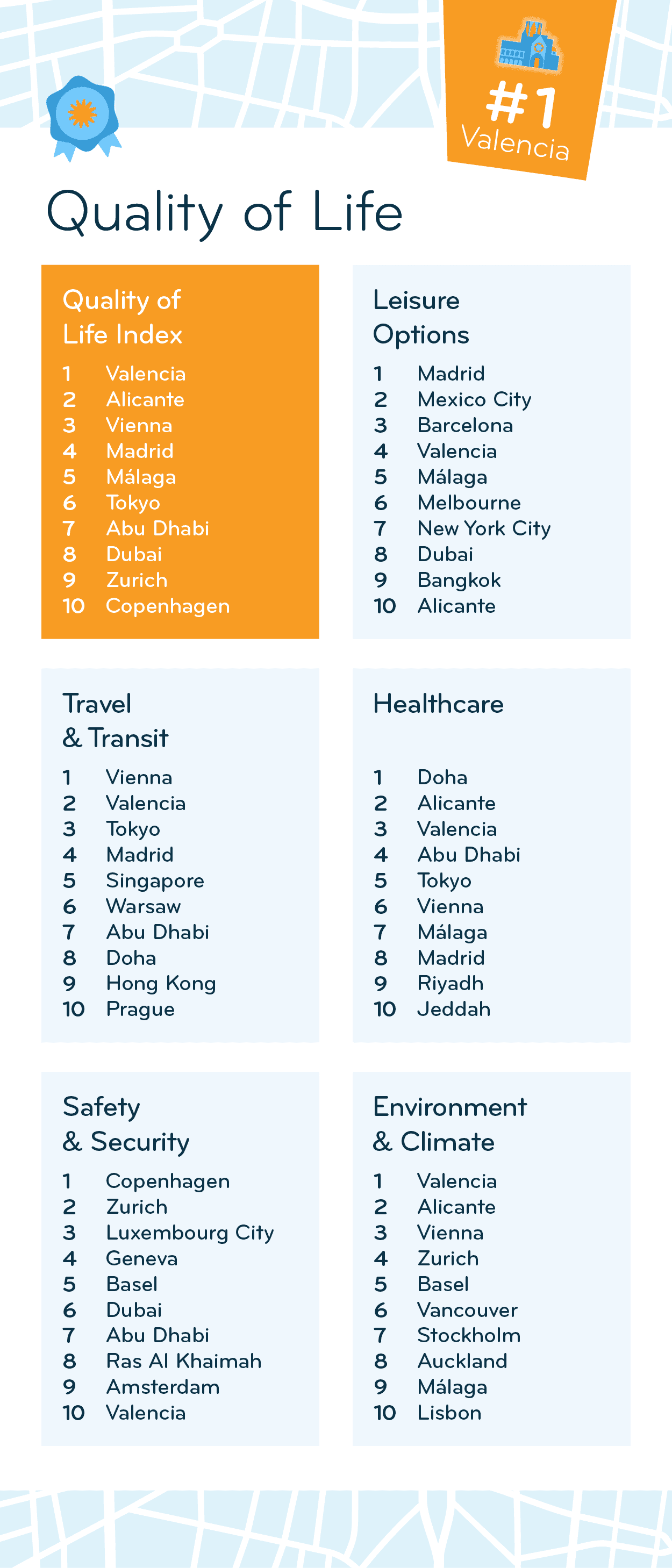 Disclaimer: Data for the Expat City Ranking was collected in February 2024 prior to the floods in some regions of Spain that occurred in October and November. It therefore does not reflect the impact of these catastrophic events.